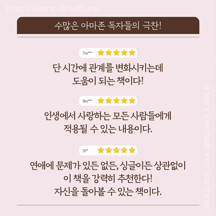 오래된 연인이든, 이제 막 시작한 커플이든 새출발을 함께 다짐하는 건 아름답고 의미 있는 일이라고 생각합니다. 이건 관계의 새로운 시작이기도 하고 오늘을 가장 중요한 날로, 어제보다 더 나은 날로 만드는 일이죠. _ 87쪽