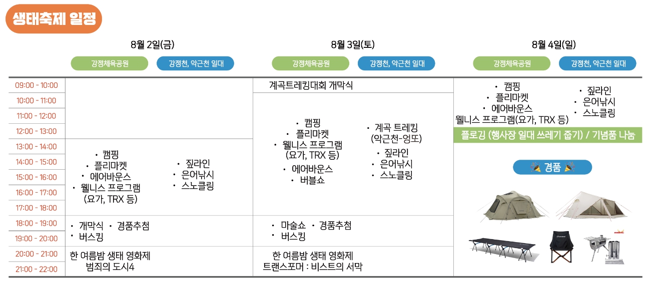 '강정마을 캠핑&생태축제' 프로그램 및 일정 안내