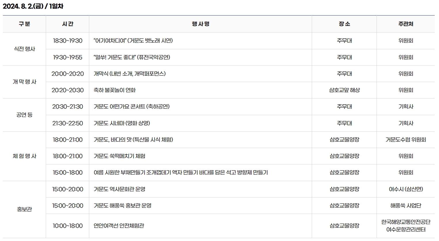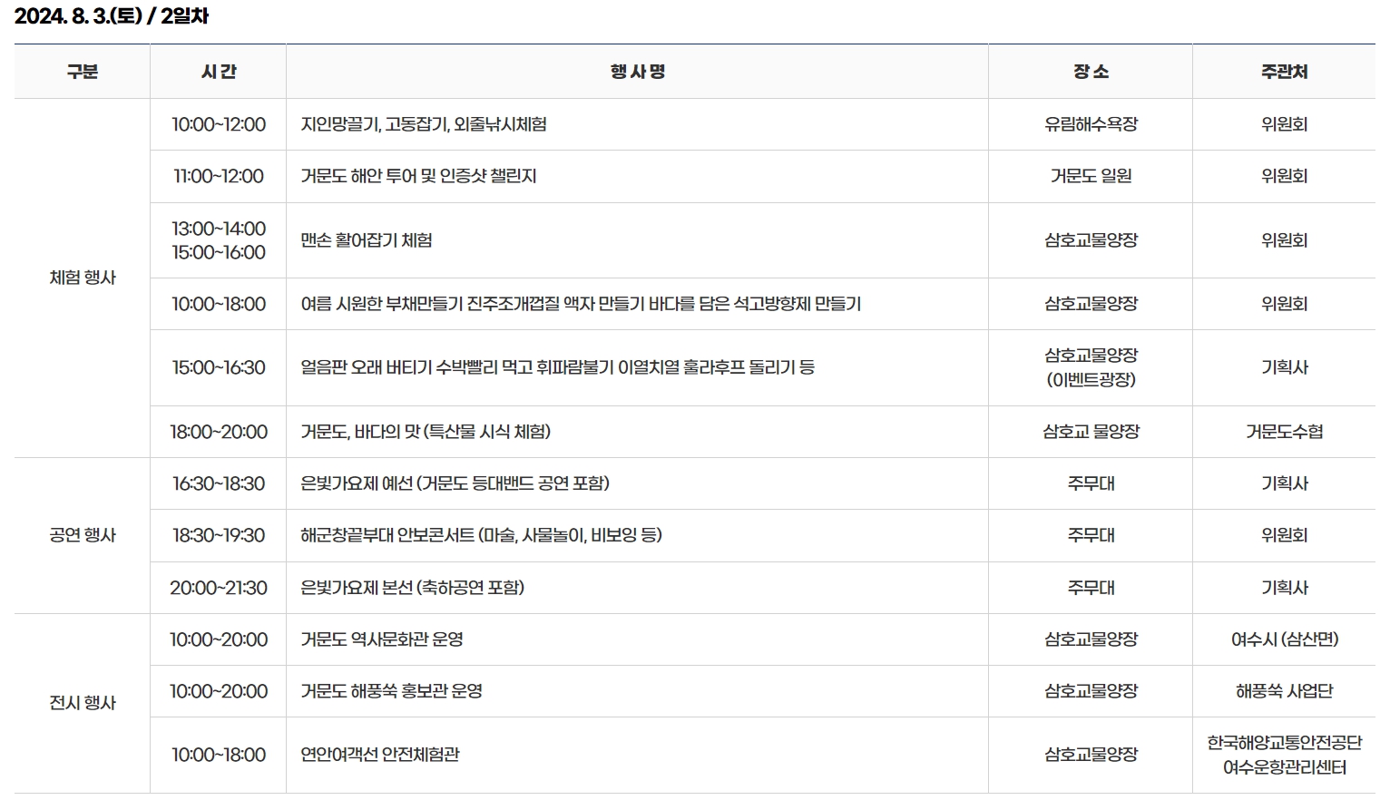 '거문도백도은빛바다체험행사' 프로그램 및 일정