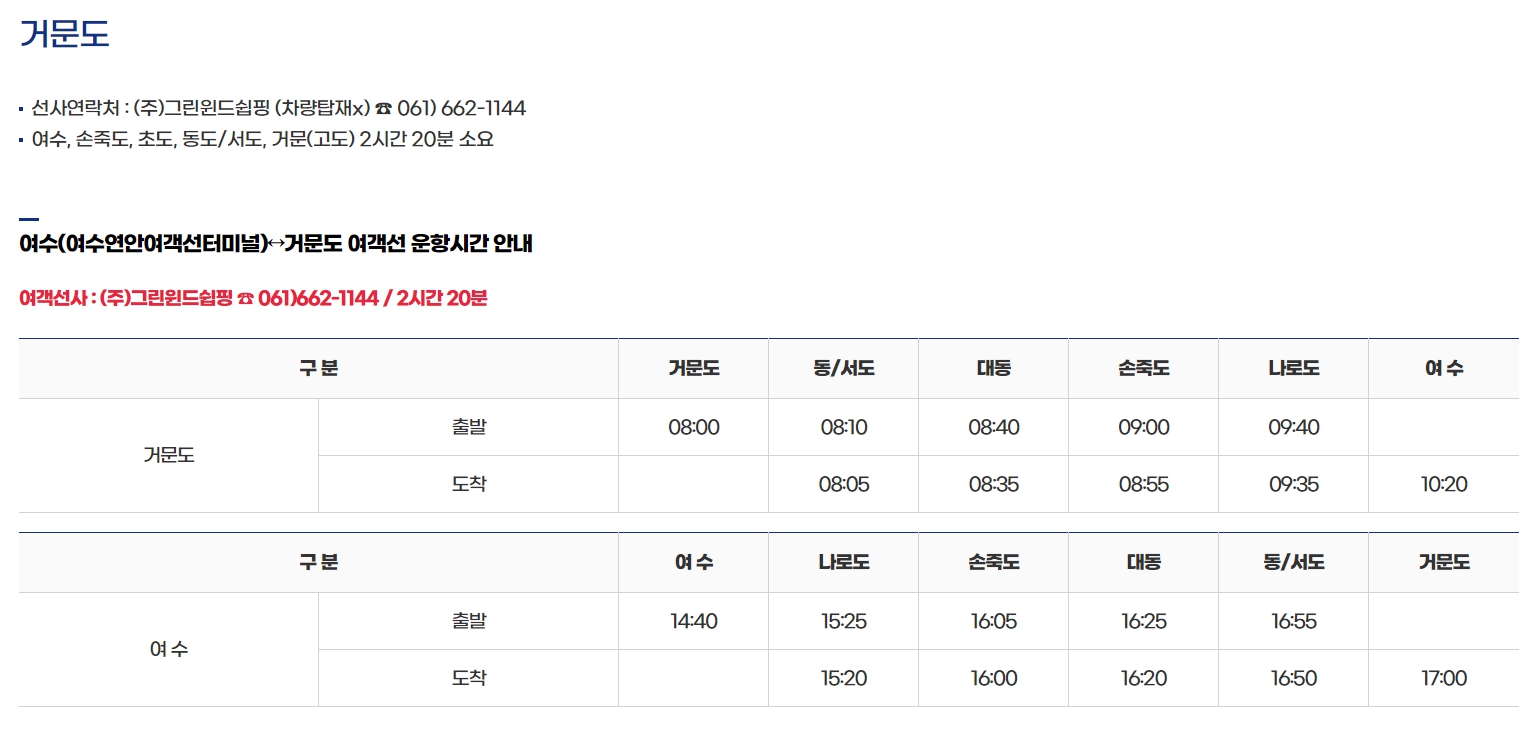 ▶여수여객선터미널 - 거문도(2시간 20분 소요)