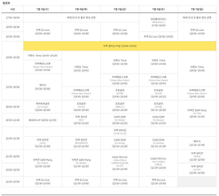 - 치맥K-POP 콘서트, 치맥EDM Party, 치맥포크 콘서트, 치맥버스킹, 초청공연