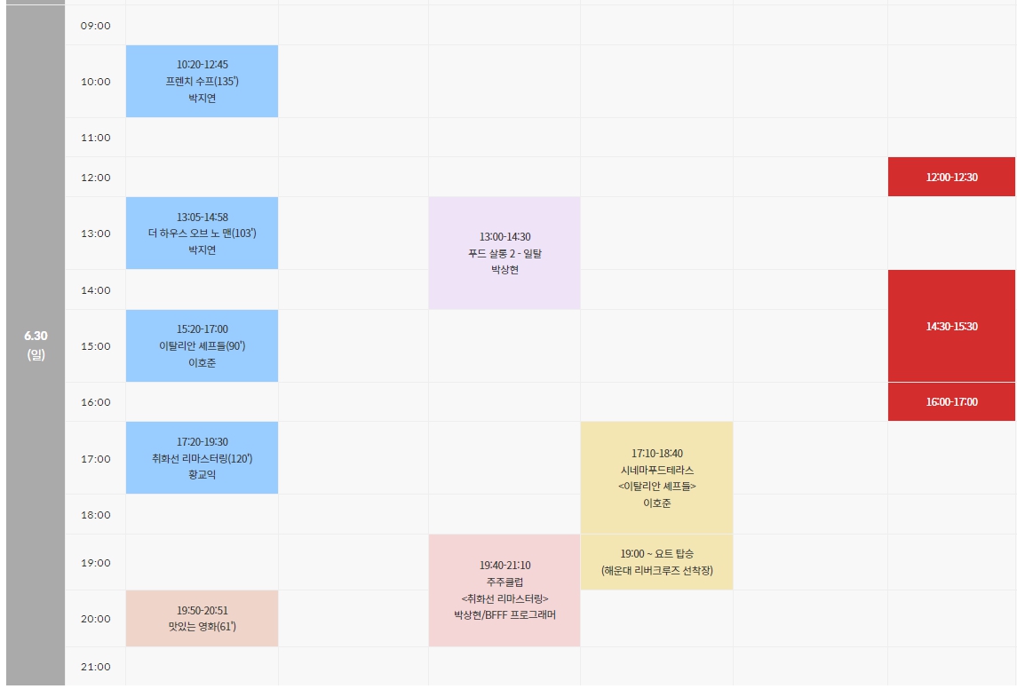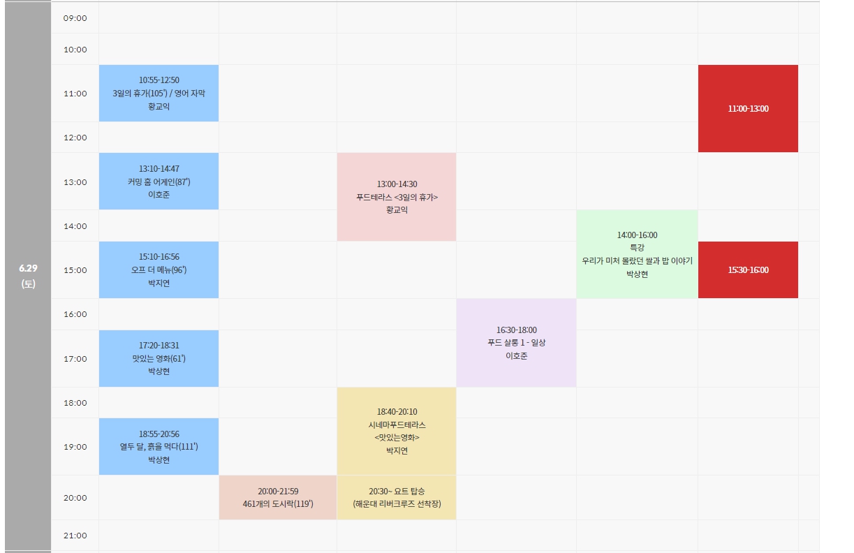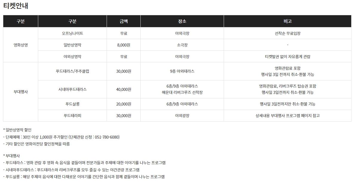 '부산 푸드 필름 페스타' 상영시간표
