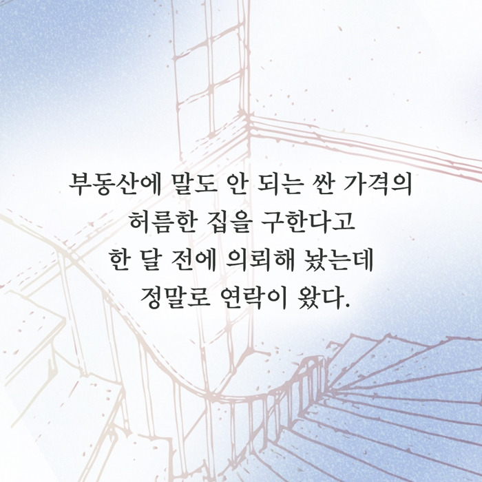 이 거대한 저택에 빛이 이렇게 많이 들어오는 이유는 건물이 폐허이기 때문이었다. 강렬한 빛과 어둠이 절대 공존할 수 없다는 듯이 그 안에서 극명하게 대립하고 있었다. (…) 천장을 보니 큰 틈과 구멍이 많았다. 그 찢어진 틈새 중 일부는 천장에서 끝나지 않고 내벽에까지 이어져 있었다. 마치 당장이라도 무너질 것 같은 기세였다. 그리고 그 틈 사이로 따뜻한 빛줄기가 떨어져 내려왔다. 벽과 천장 곳곳에는 비스듬한 거울이 여럿 걸려 있었다. 곧 무너져 내릴 것 같은 두려움과 따뜻한 빛줄기 속의 안도감이 동시에 느껴지는, 무어라 정의 내릴 수 없는 이상한 곳이었다.