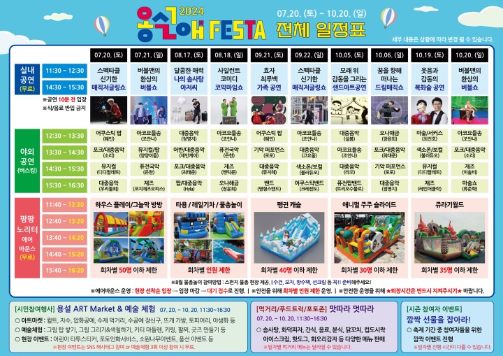 - 일시, 장소: 2024. 07. 20. 토 ~ 10. 20. 11:30~16:30, 용설아트스페이스 실내공연장 및 야외무대