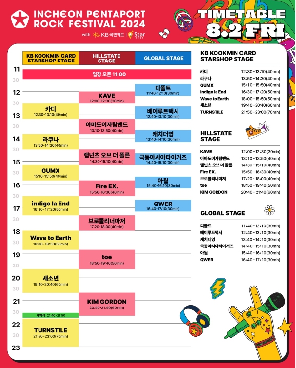 [참가 아티스트 및 타임테이블]