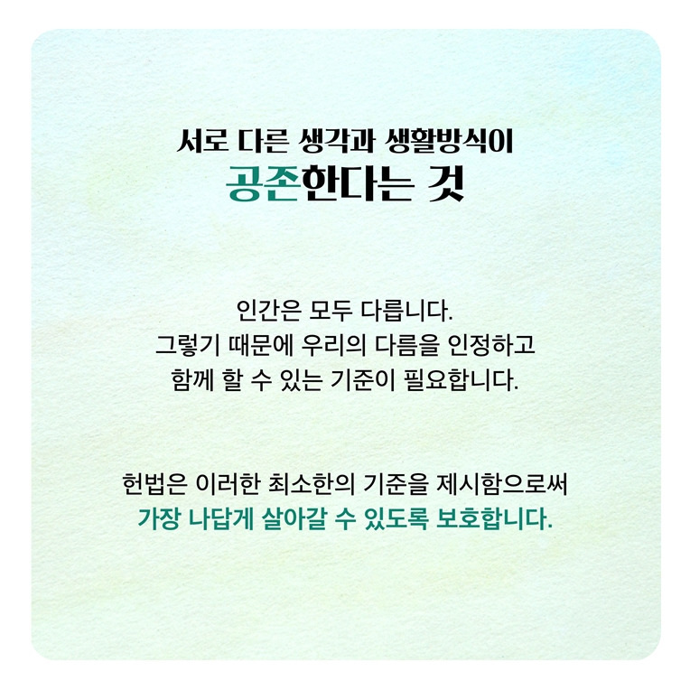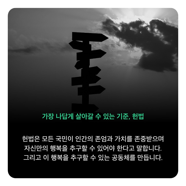 당신이 오늘 평온하게 귀가해 침대에 누울 수 있었던 것은 ‘헌법’이라는 든든한 방패 덕분일지도 모른다. ‘대한민국 헌법’이라는 단어에서 느껴지는 무거움과 딱딱함과는 달리, 헌법은 우리 삶과 밀접하게 연결되어 있다. 원하는 곳에서 살고 이사할 수 있는 자유, 꿈꾸는 직업을 마음껏 선택할 수 있는 권리, 친구나 연인과 나누는 사적인 대화와 일상을 남에게 공개하지 않을 프라이버시까지, 생각보다 많은 부분이 헌법으로 보호되고 규정된다.