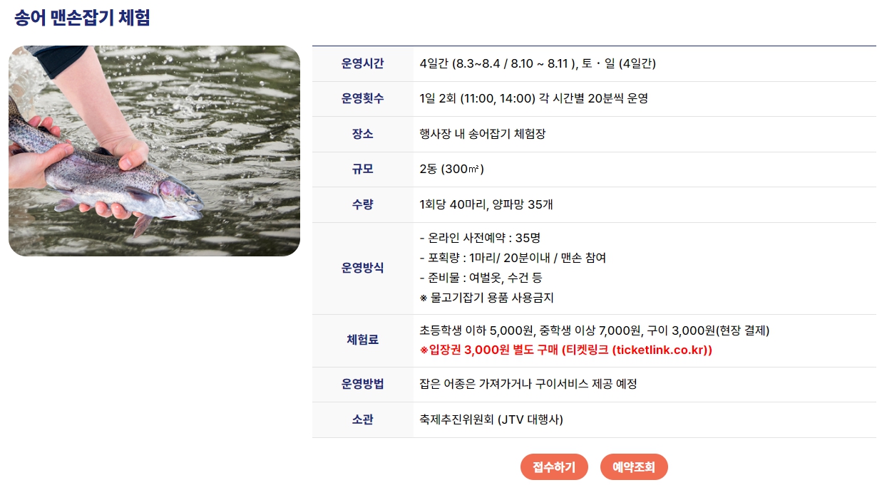 1. 메인프로그램 : 낙화놀이, 쿨밸리 밸리밤, 송어잡기 체험