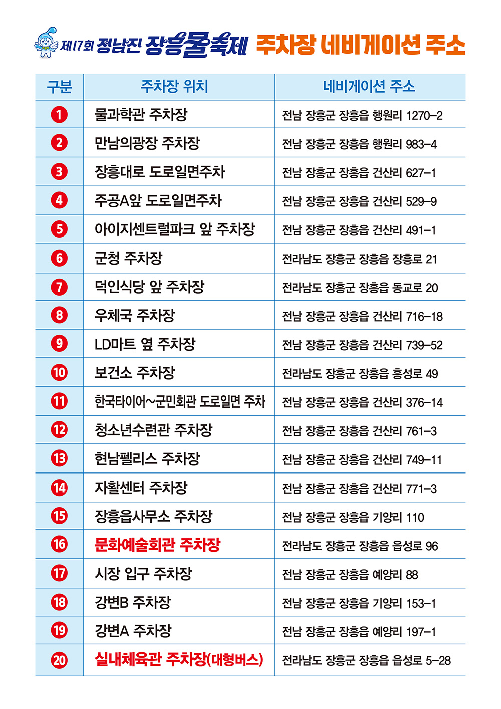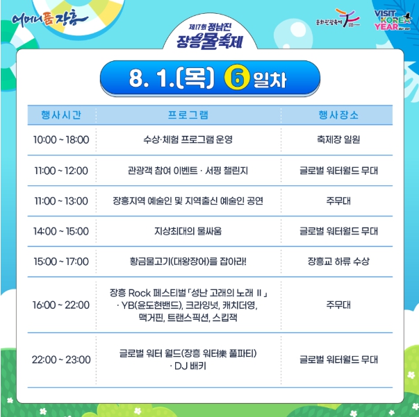 '정남진 장흥 물축제' 행사 안내