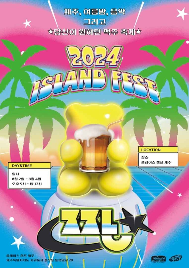 제주도 서귀포시 성산에 위치한 플레이스 캠프 제주 by 휘닉스에서 열리는 맥주 페스티벌입니다. 30종의 맥주와 퓨전 막걸리 등 주류와 함께 푸드스트리트 먹거리, 피크닉존 플리마켓 등 즐길거리도 준비되어있다. 올드/시티팝과 댄스뮤직 등 총 6팀의 버스킹 공연과 함께 매일 밤 10시에는 스피닝 울프에서 디제잉이 진행된다. 주류가 포함된 행사이므로 만 19세 이상만 입장 가능하며, 대중교통 이용을 권장한다. 티켓은 베이직, 프리이엄, 프리미엄 플러스로 구성되어 있으며, 해당 티켓에 따라 이용 가능한 맥주 라인업이 구성 되어 있다.