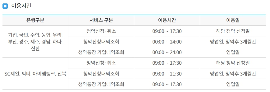 - 청약신청은 청약신청 당일 09:00부터 17:30까지 가능하며 마감시간인 17:30 이전에 모든 절차가 마무리되어 최종신청이 완료되어야 합니다. 청약신청 중간에 마감시간(17:30)경과에 따른 청약신청이 중단되지 않도록 충분한 여유시간을 가지고 신청하시기 바랍니다.