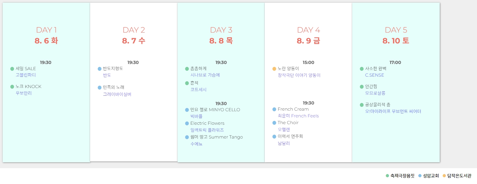 | '서울프린지페스티벌' 축제 소개, 기본 정보, 프로그램 및 일정 안내 (0) | 2024.08.02 |