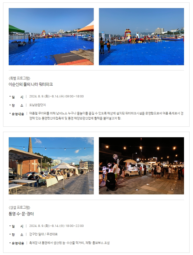 3. 소비자 참여 프로그램 : 이순신의 물의 나라 워터랜드, 통영 수,문 장터