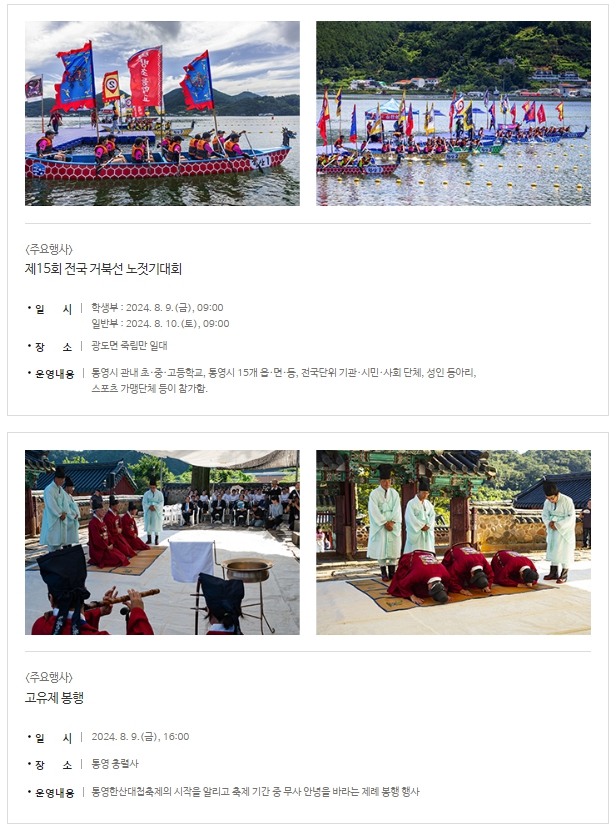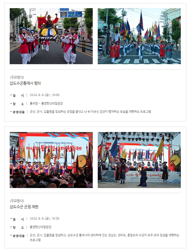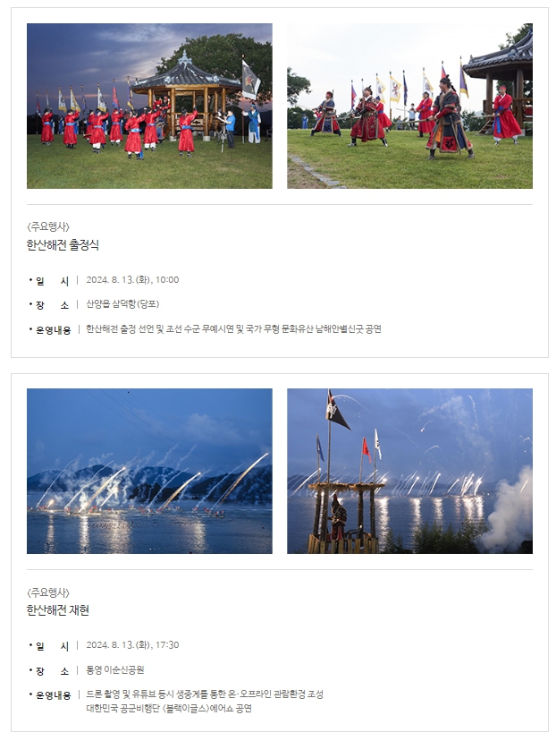 '통영한산대첩축제' 프로그램 및 일정 안내