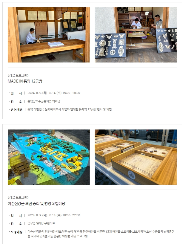 | 15:00~18:00 | MADE IN 통영 12공방 | 통제영 백화당 | |