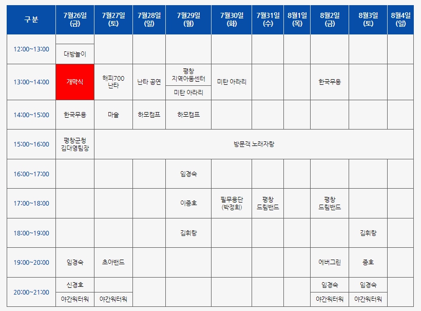 | 행사명 | 일정 | 내용 |