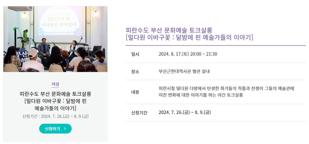 - 야사 : 피란수도 부산 문화예술 토크살롱, 피란수도 보이는 DJ라디오 등