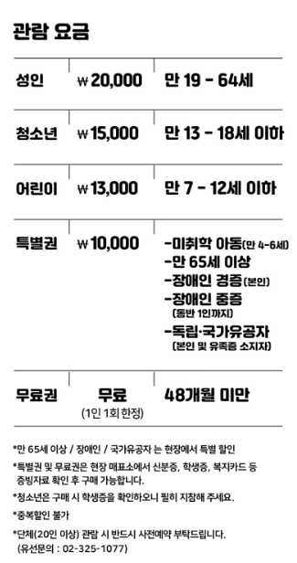 [운영 시간] 10:00 ~ 20:00 (연중무휴 / 관람 종료 1시간 전 입장 마감)