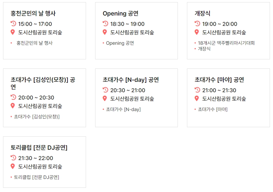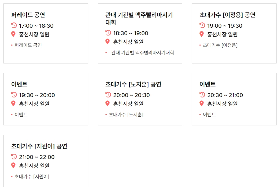 6. 부대행사 : 홍천군민의날, 불꽃놀이, 맥주안주 요리 시연, 프리마켓