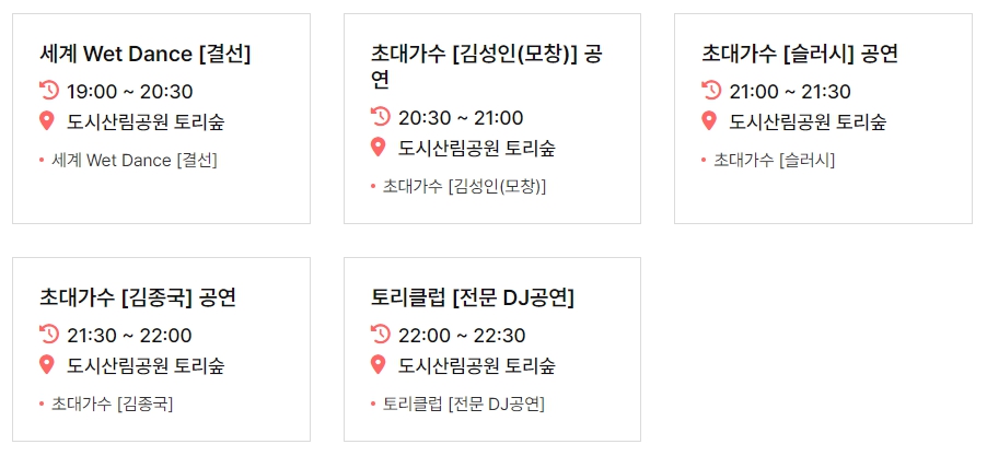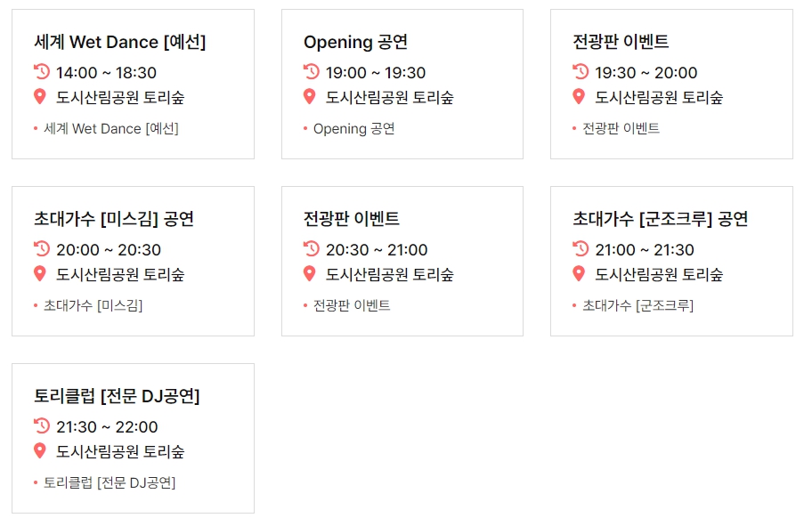 3. 무대행사 : 세계 Wet Dance대회, DJ공연, 가수공연, 무대이벤트 등