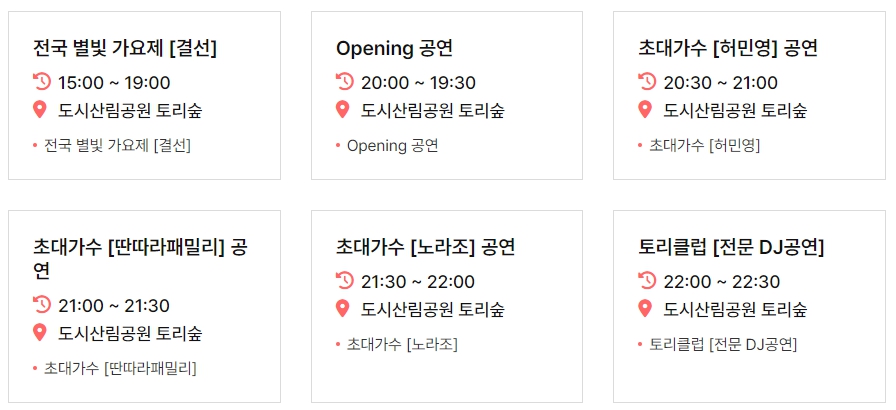 - 전야제 퍼레이드 및 초대가수 공연 등