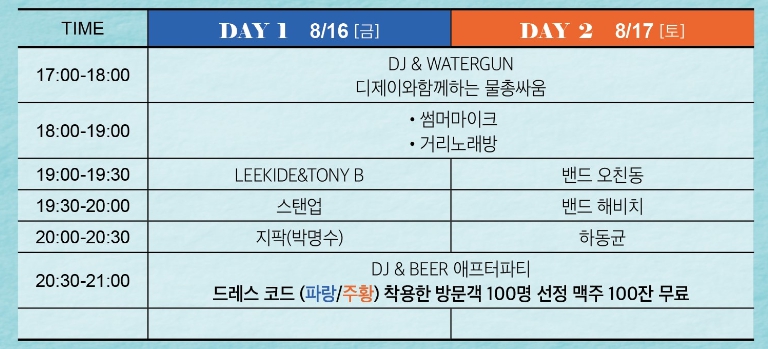 2. 부대프로그램 : DJ와 함께하는 물총싸움, 애프터파티, 썸머마이크 거리 노래방