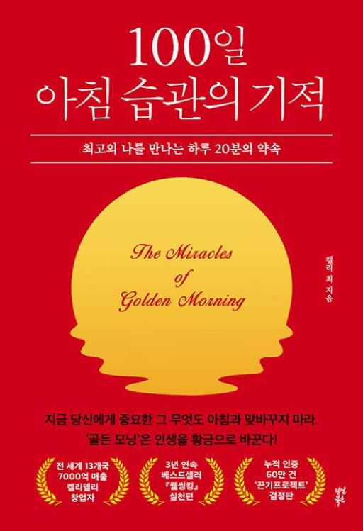 아침은 하루 중 잠재의식이 가장 활발한 때로, 잠재의식을 원하는 방향으로 이끌면 목표 달성이 수월해진다. 아침이 하루의 골든타임이며 지금 당신에게 중요해 보이는 그 무엇도 아침과 맞바꿔서는 안 되는 이유다. ‘골든 모닝’은 인생을 황금으로 바꾼다. 많은 성공자가 아침의 에너지를 하루, 나아가 인생 전반에 걸쳐 활용하기 위해 루틴을 습관화해왔다. 이를 토대로 체계화한 ‘모닝 시크릿 루틴’은 인간의 3영역, 즉 영혼·정신·육체를 깨워 잠재의식을 최대로 활용한다. 영혼을 충전하는 시각화와 확언, 정신을 보듬는 명언 필사와 독서, 신체를 단련하는 운동을 습관화하는 방식이다. 수천만 명이 참여한 ‘100일 끈기 프로젝트’를 이끌어오며 입증한, 실패 없이 습관을 형성하고 유지하는 방법까지 이 책에 아낌없이 담았다. 읽기만 해도 저자의 열렬한 지지와 환대가 가슴으로 와닿는다. “당신만의 위대한 해 뜰 날이 반드시 온다. 지금 뜨겁게 결단하라!”