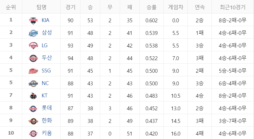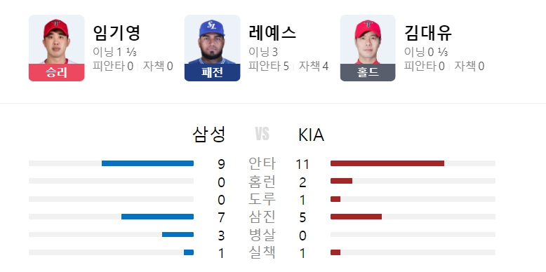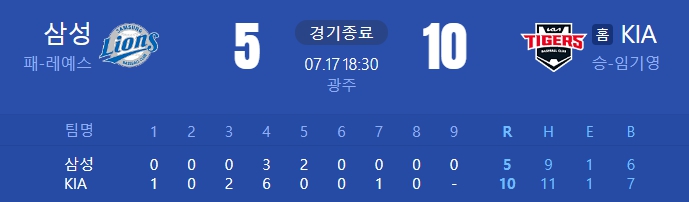 [24.07.17 (수) 광주 18:30 / 삼성 5 : 10 기아]