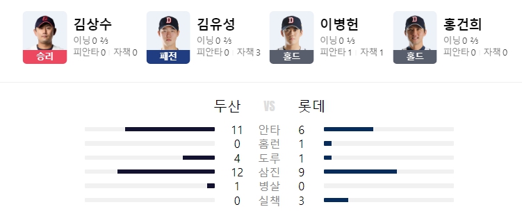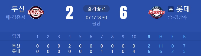 [24.07.17 (수) 울산 18:30 / 두산 2 : 6 롯데]