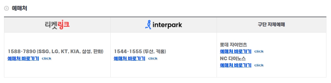 [티켓링크] 1588-7890 (SSG, LG, KT, KIA, 삼성, 한화)