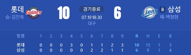 [24.07.19 (금) 대구 18:30 / 롯데 10 : 6 삼성]