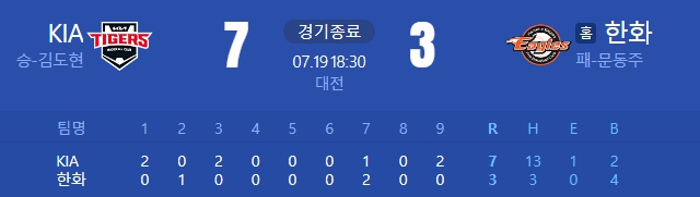[24.07.19 (금) 대전 18:30 / KIA 7 : 3 한화]