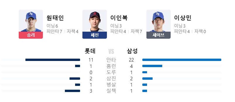 김지찬(1회),윤동희2(2 4회),류지혁(3회),김현준(4회),강민호(5회)