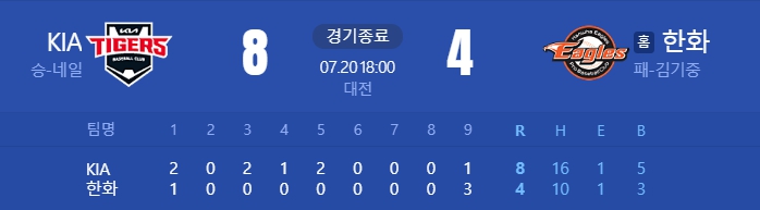 [24.07.20 (토) 대전 18:00 / KIA 8 : 4 한화]