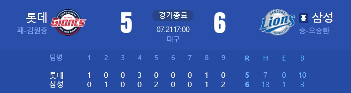 [24.07.21 (일) 대구 17:00 / 롯데 5 : 6 삼성]