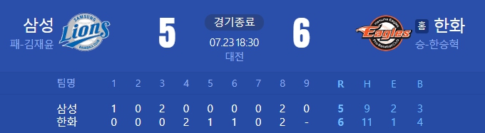 [24.07.23 (화) 대전 18:30 / 삼성 5 : 6 한화]