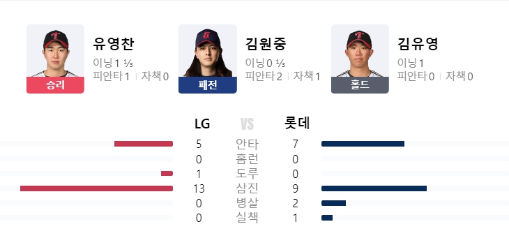 | 홈런 | 김영웅19호(3회2점 바리아),장진혁4호(5회1점 레예스) |