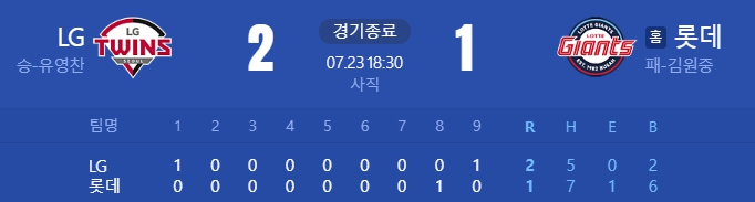 [24.07.23 (화) 사직 18:30 / LG 2 : 1 롯데]