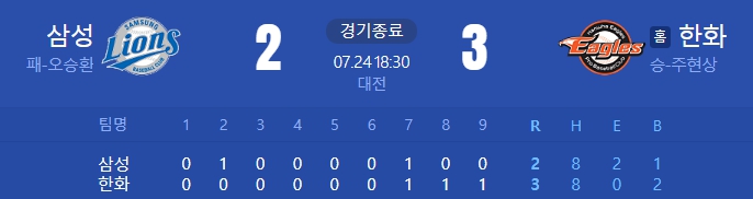 [24.07.24 (수) 대전 18:30 / 삼성 2 : 3 한화]