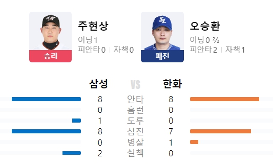 | 실책 | 김영웅(5회),류지혁(7회) |