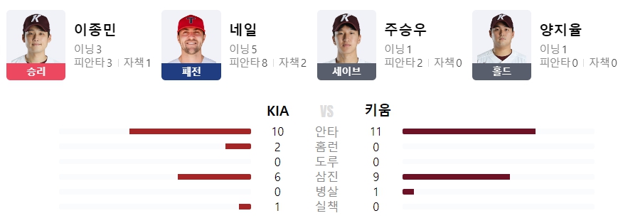 | 홈런 | 김도영27호(3회2점 김인범),나성범12호(6회1점 이종민) |