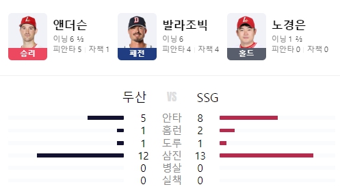 | 홈런 | 에레디아11호(3회3점 발라조빅),박준영7호(5회1점 앤더슨),오태곤2호(7회2점 박정수) |