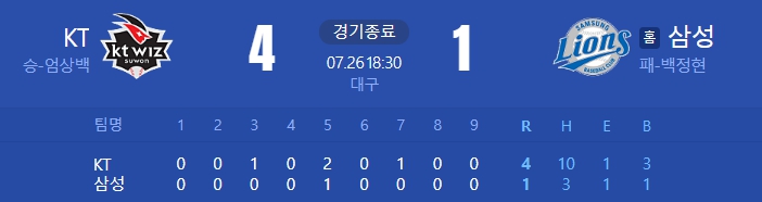 [24.07.26 (금) 대구 18:30 / KT 4 : 1 삼성]