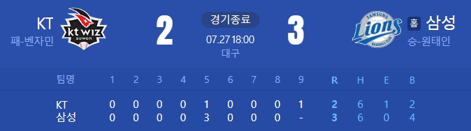 [24.07.27 (토) 대구 18:00 / KT 2 : 3 삼성]