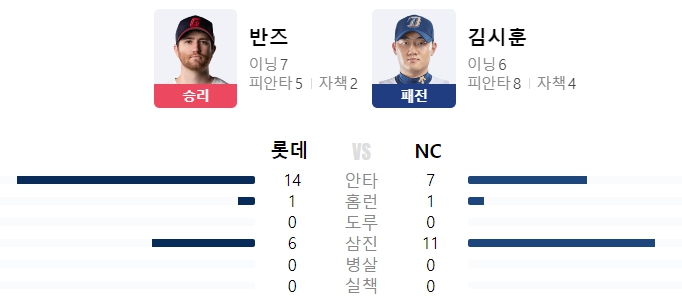 | 홈런 | 데이비슨30호(7회1점 반즈),고승민7호(8회2점 전사민) |