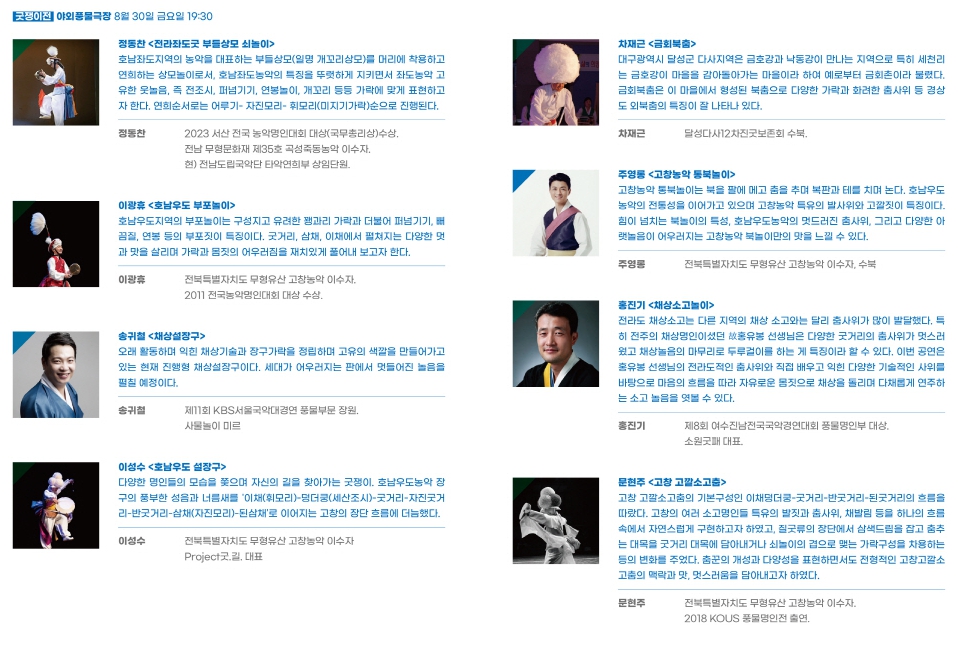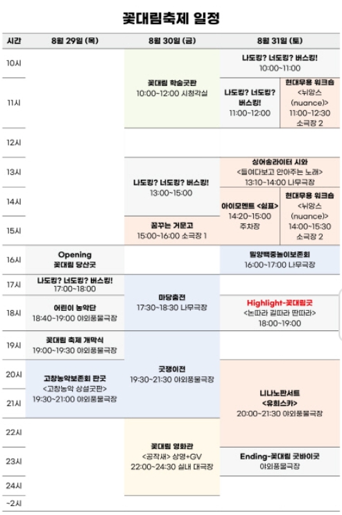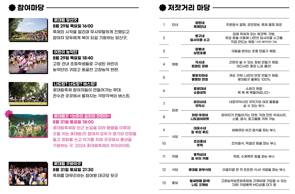 8월축제 '고창농악 꽃대림축제' 프로그램 일정