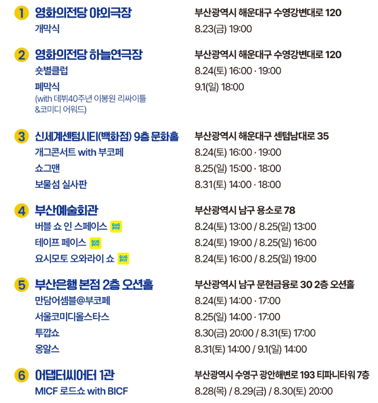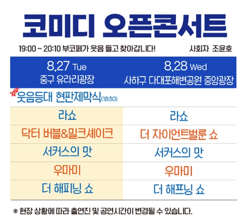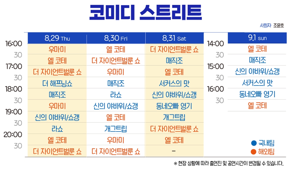 8월 축제 '부산국제코미디페스티벌' 프로그램 일정