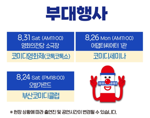 8월 축제 '부산국제코미디페스티벌'행사 안내