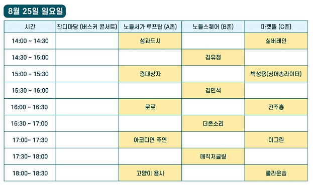 [존별 아티스트 및 시간표]