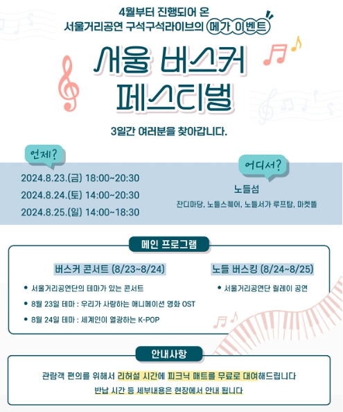 8월 축제 '서울 버스커 페스티벌' 프로그램 일정 안내