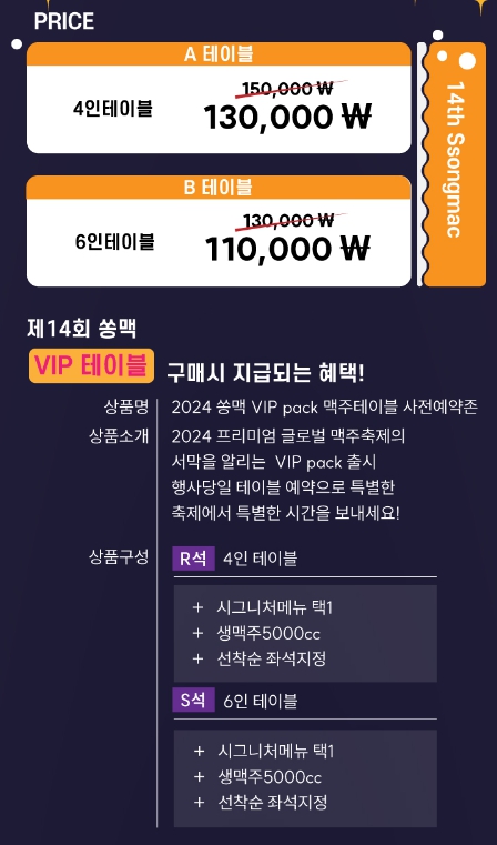 ※ 축제 공연 관람은 VIP PACK을 결재하시지 않더라도 관람 가능합니다.